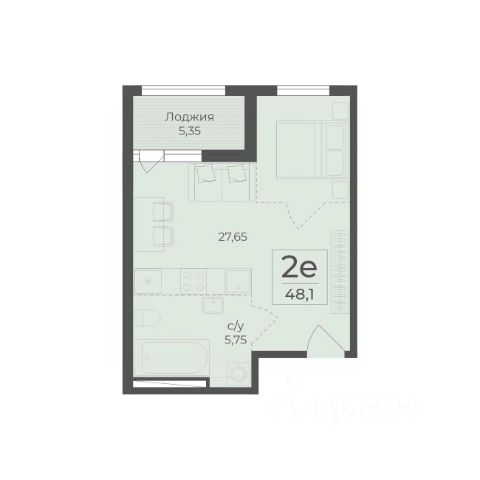 2 спальни, кухня-гостиная, с/у и балкон.