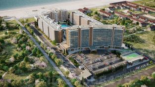 "Tamerun" - морская резиденция на Западном берегу Крыма, между городами Евпатория и Саки. Резиденция "Tamerun" представляет собой современный комплекс из четырёх корпусов высотой 9 и 12 этажей, гармонично вписанных в живописный ландшафт. Интерьеры выполнены в изысканном элегантном стиле с применением премиальных материалов — натурального мрамора, ценных пород дерева и высококачественной кожи. Просторные помещения наполнены естественным светом благодаря большим панорамным окнам, открывающим завораживающие виды на Черное море. Атмосфера резиденции пропитана уютом и гармонией, создавая идеальные условия для комфортной жизни и отдыха. Рядом с "Tamerun" находится Сасыкский заказник и самое крупное в Крыму солёное розовое озеро Сасык-Сиваш. На территории резиденции находится открытый бассейн с подогревом, окружённый шезлонгами и зоной отдыха, где можно наслаждаться теплыми лучами солнца и свежим морским бризом. Для любителей активного отдыха предусмотрен теннисный корт и фитнес-зал, оборудованный новейшими тренажёрами. В солнечной резиденции есть всё для жизни и интересного отдыха: собственный песчаный пляж и теннисный корт, бассейны с морской водой, рестораны и летнее кафе, зона СПА и фитнес-центр, общественно-деловые пространства и подземный паркинг. Профессиональная сервисная компания с международным опытом возьмёт на себя все операционные вопросы по управлению и эксплуатации, обеспечивая 5-звёздочный уровень обслуживания. Купить 2-комнатную квартиру на 5 этаже в Саки.
