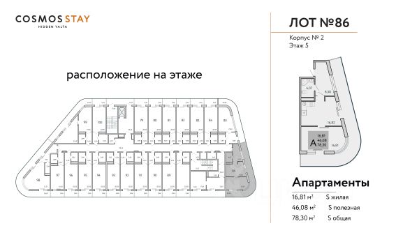 COSMOS STAY HIDDEN YALTA - это комплекс апартаментов из 5 корпусов для отдыха с собственной развитой инфраструктурой. Находится в Ялте у подножья горы Могаби на южном берегу Крыма, вблизи с живописным горно-лесным заповедником. Из апартаментов комплекса открываются завораживающие виды на горные вершины и Чёрное море. В шаговой доступности могабинские озера. Находится на подножии Ай-Петри, что позволяет комфортно добраться до горных склонов. До центра Ялты 10 минут на машине, как и до моря. Концепция апарт-комплекса предполагает круглогодичный комфортный отдых в формате retreat, с заботой о ментальном и физическом здоровье. Всё для Вашего восстановления и перезагрузки, для размеренной и комфортной жизни. Целебный морской воздух и благодатный климат. В комплексе создана атмосфера респектабельной среды для жизни: - собственная инфраструктура; - свой зеленый двор; - безопасность; - детские пространства; - собственная инфраструктура; - свой зеленый двор; - безопасность; - детские пространства; - лаунж-зоны; - будет присвоен статус 3 звезды и работать отельный оператор; - пространства для медитаций и занятий йогой; - ресторан; - индивидуальные келлеры для габаритного инвентаря; - всесезонный бассейн; Консьерж-сервис полного цикла обслуживания с опцией управления недвижимостью - разрешит любой возникающий вопрос. Строительство ведется при проектном финансировании СБЕРБАНКА, ФЗ-214. Продажа через эскроу-счет без комиссий. Завершение строительства - 3 квартал 2026 года Передача ключей до 31.12.2026 Ремонт и оснащение апартаментов: декабрь 2026-апрель 2027 Запуск апарт-отеля в управление - июнь 2027