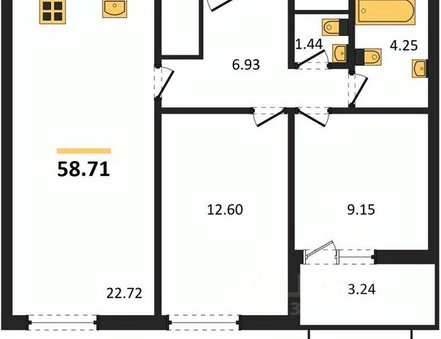 Санузел раздельный.