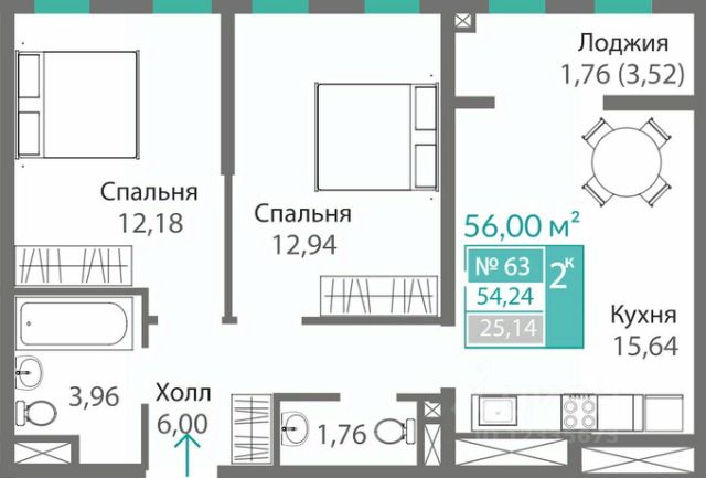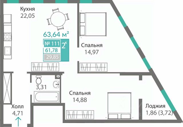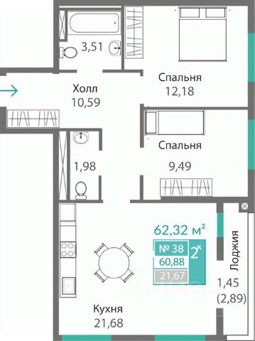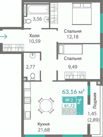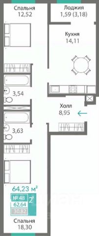 - удобные двухкомнатные от 64,6 м