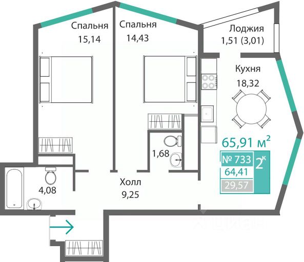 • ✓ В базе Циан 40 2-комнатных квартир на 7 этаже в микрорайоне Крымская Роза в городе Симферополь