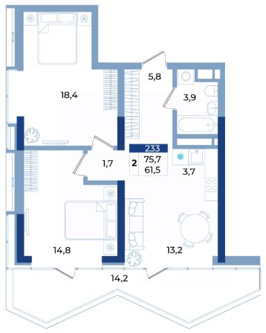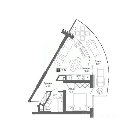 - В квартире произведена перепланировка, квартира разделена на спальню и большую кухню-гостинную с выходом на балкон.
