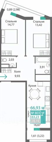 Предлагаем Вам двухкомнатную квартиру, расположенную на видовом восьмом этаже девятиэтажного монолитного дома на пр-т А. Суворова. Общая площадь квартиры 54,9кв.м, жилая площадь 25,1кв.м, кухня 10,1кв.м и совмещённый санузел.