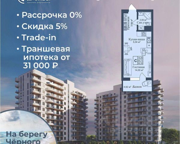 АКЦИИ: * Ипотека от 40 000 руб. в месяц * Рассрочка 0% до 2028г. * Бронь на 30 дней * 5 мин до моря пешком, планировки от 30 кв.м. * Высота потолков 3 м , предчистовая и чистовая отделка * Доходность инвестиций от 40% годовых. * Сдача в аренду от управляющей компании (доверительное управление) позволяет получать доход от сдачи апартаментов без вашего участия * Безопасная сделка по ФЗ-214/эскроу-счёта "Аллея Дружбы" — это комплекс апартаментов бизнес-класса в Евпатории, расположенный в 5 минутах прогулки от золотистых пляжей Чёрного моря. Два современных 12-этажных корпуса с панорамными видами на море объединены стильным стилобатом с центральным входом и бутиковыми retail-площадями, а закрытая территория и подземный паркинг обеспечивает приватность и безопасность. АРХИТЕКТУРА И КОНСТРУКТИВНЫЕ ОСОБЕННОСТИ: • 12-этажное здание в авторском архитектурном стиле • Высота потолков (от 2,9 м до 3,1 м) • Эксклюзивное решение для первых этажей (высота потолков 3,4м) • Евро планировки с террасами и гардеробными • Панорамное ламинированное остекление • Индивидуальные келлеры • Видовые лоты на море • Высокоскоростные лифты по концепции 5* отеля • Предусмотрено резервное электроснабжение • По проекту предусмотрено место для кондиционера и практическое решение для маскировки коммуникаций ЛОКАЦИЯ И ОКРУЖЕНИЕ: • До центра Евпатории - 7 минут на машине • Пляж - всего 5 минут пешком • Рядом с комплексом развитая инфраструктура (рестораны, магазины, кафе, медицинские учреждения, санатории) ГОСТЕПРИИМСТВО И БЕЗУПРЕЧНЫЕ СЕРВИСЫ: • Управляющая компания премиум-класса • Консъерж-сервис 24/7 • Доставки продуктов и готовой еды • Зона ресепшн оформлена в стилистике комплекса • Лобби с атмосферным кафе и зонами для чтения • Премиальное решение для мест общего пользования • Интерактивная детская комната для самых маленьких • Пункты выдачи товаров от маркетплейсов • Гостевые парковочные места • Организовано место для хранения колясок ваших малышей • Ремонт на выбор "Комфорт-формат" и "Гранд-формат" БЕЗОПАСНОСТЬ И ТЕХНОЛОГИИ СПОКОЙСТВИЯ: • Закрытая территория, двор без машин • Система контроля доступа (строго по электронным пропускам) • Подземный паркинг с тремя типами машиномест • Выделенные места для велосипедов • Камеры видеонаблюдения • Круглосуточный ресепшн • Телеметрия - автоматический сбор и передача данных с приборов учета апартамента минимизирует ошибки и мошенничество • Система умного апартамента с дистанционным управлением БЛАГОУСТРОЙСТВО ТЕРРИТОРИИ: • Ландшафтный дизайн по проекту (2 334 м² озеленения) • Прогулочные аллеи и зоны отдыха для расслабления и медитации • Коворкинг-зоны с высокоскоростным Wi-Fi для бизнес-переговоров • Детские и спортивные площадки • В апарт-комплексе вас ждут мини-маркет и магазин повседневных товаров • Специальное пространство для курения • Выделенная площадка для игры в волейбол и баскетбол РЕЛАКС И ДОСУГ: • На территории комплекса 2 отдельных бассейна: летний бассейн с выделенной зоной для детей и крытый те