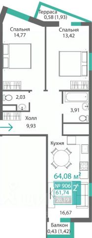 Продаётся 2-комнатная квартира в строящемся доме (Этап 4 (Секции А2, Ж2, Г4, В2, Г3)), срок сдачи: II-кв. 2028, общей площадью 61.74 кв.м., на 9 этаже. Новый жилой комплекс "Подсолнух" от застройщика "Монолит" расположен по адресу: Республика Крым, г. Симферополь, ул. Святителя Гурия