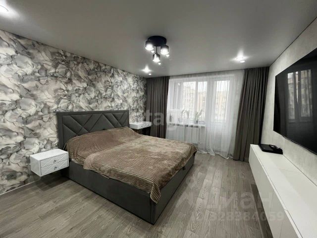 кровать в спальне, тумбочки 2 шт., шкаф-купе-гардеробная, люстры, шторы, тюль, тумба,