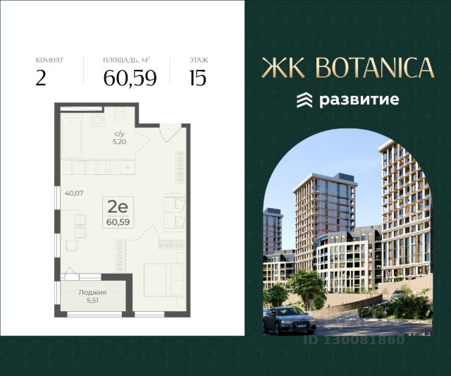 В продаже квартира площадью 56.56 кв. м с отделкой White Box, расположенная в жилом комплексе бизнес-класса Botanica. Проект от федерального застройщика ГК "Развитие" находится в живописном месте Ялты, вблизи Массандровского парка. Botanica - квартиры у моря для жизни и инвестиций. Жилой комплекс бизнес-класса Botanica в престижной Массандре оправдывает название: его приватная территория с ресторанами и бассейном напоминает ботанический сад. Благодаря расположению на возвышенности из окон открываются панорамы на море, горы и заповедник, чьим естественным продолжением кажется комплекс. Это место сочетает преимущества первозданной природы с чистым воздухом и тишиной и близость к центру Ялты всего в 10 минутах езды, где доступны все возможности прибрежного города. Расположение Пешком: - 5 мин. до Ялтинского горно-лесного заповедника; - 10 мин. до Массандровского парка; - 13 мин. до троллейбусной станции и автовокзала; - 25 мин. до Массандровского пляжа. На автомобиле: - 2 мин. до Южнобережного шоссе; - 8 мин. до Морского вокзала; - 9 мин. до центра Ялты; - 10 мин. до канатной дороги Ялта-Горка; - 15 мин. до Массандровского пляжа; - 1,5 часа до ж/д вокзала "Симферополь-Пассажирский". Архитектура - 6 современных секций высотой от 6 до 14 этажей; - Переменная этажность гарантирует хорошую инсоляцию и виды; - Элегантный и визуально легкий вентилируемый фасад; - Фасады облицованы материалами графитового, белого и медного оттенков; - Акцентные металлические элементы и подсветка; - Панорамные лоджии и увеличенные окна высотой 1,7 м; - Высокие потолки 3 м в квартирах. Благоустройство - Всесезонный двор-сад площадью 2,7 га с многовековыми кипарисами; - Собственный бассейн на территории; - Площадки для йоги и дыхательных гимнастик; - Workout-тренажеры на свежем воздухе; - Дорожки для прогулок всей семьей; - Просторные и безопасные детские площадки; - Лаунж-зоны на природе; - Благоустроенная крыша с площадками для йоги; - Ресторан с террасой и отличным видом на всю Массандру; - Светлые дизайнерские лобби со всеми удобствами; - Охраняемый подземный паркинг на 205 машино-мест; - Гостевые парковочные места вне территории; - Торговая галерея на 1 этажах с магазинами, рестораном и другой инфраструктурой; - Видеонаблюдение, консьерж в каждой парадной, вход только по пропускам. Окружение - 5 царских резиденций: Ливадийский дворец, Массандровский дворец, Винзавод Массандра, Воронцовский дворец, Особняк княгини Барятинской; - 4 парка: сквер Победы, Стахановский парк, Массандровский парк-памятник, парк имени Мордвинова; - 7 благоустроенных пляжей, в том числе Приморский, пляж "Опера Прима" и "Дельфин", отдаленный от центра; - 5 крупных торговых центров, Южнобережный супермаркет, рестораны и бары с видом на море; - 5 мест развлечений для детей: два зоопарка, парк динозавров, веревочный городок и аквапарк. Проект для жизни и инвестиций - Федеральный девелопер, входящий в ТОП-20 застройщиков России; - Профессиональная управляющая компания; - Консь