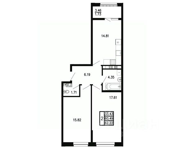 Уникальность конкретного апартамента Большая площадь — 47 м²