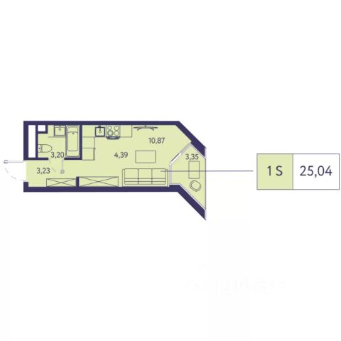 Апартаменты общей площадью 46.13 м², которые находятся на 4 этаже 9 этажного дома, кухня 6.19м2, жилая 26.19, санузел совмещённый.