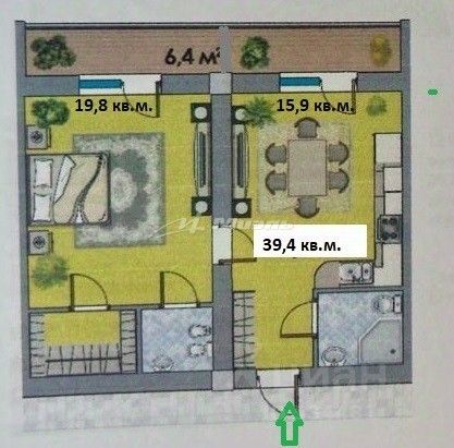 - Балкон: 6,4 кв.м., где можно наслаждаться утренним кофе с видом на зелень и бассейн.