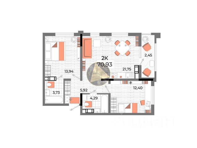 Срочно продаётся 2-комнатная квартира общей площадью 70,93 м2 на западном побережье Крыма, в городе Евпатория. Квартира расположена в монолитном жилом комплексе комфорт класса в экологичном окружении. Идеальное решение для спокойной семейной жизни с премиальным комфортом! О квартире: - Квартира находится на 5 этаже 13-этажного дома - Общая площадь квартиры 70.93 м2 - Светлая спальня 13.94 м2 с отдельным санузлом 3.73 м2 - Уютная детская 12.40 м2 - Просторная кухня-гостиная 21.75 м2 - Совмещённый санузел 4.29 м2 - Лоджия 2.45 м2 PRO дом и район: - Территория комплекса закрыта и спроектирована по принципу двор без машин. Для владельцев авто организован многоуровневый паркинг. В общественных зонах установлено видеонаблюдение для обеспечения дополнительной безопасности. - В состав проекта входит благоустроенная набережная Мойнакского озера, зоны отдыха с бассейнами, вейк-парком, амфитеатром, пешеходными и велосипедными дорожками. Через весь комплекс пройдёт пешеходный бульвар. - Жителям комплекса доступны частные грязелечебница, спа-салон, тренажёрный зал, ресторан и конгресс-центр. Для активного отдыха предусмотрены воркаут-зоны, площадки для детских игр, спортивных занятий и йоги. - На территории комплекса построен детский сад на 280 мест, школа на 1100 учащихся, торговый центр и медицинская клиника. - До Монайского озера — 170 метров, до моря — 15 минут пешком. В 510 минутах на машине находятся продуктовый рынок, супермаркеты, детская поликлиника, школы 6 и 16. Прямая продажа, один правообладатель. Не упустите свой шанс! Квартира в наличии, звоните прямо сейчас!