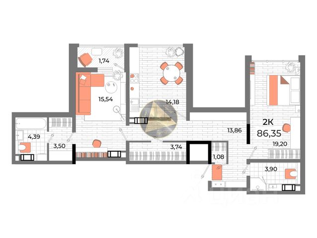 Срочно продаётся 2-комнатная квартира общей площадью 86,35 м2 на западном побережье Крыма, в городе Евпатория. Квартира расположена в монолитном жилом комплексе комфорт класса в экологичном окружении. Идеальное решение для спокойной семейной жизни с премиальным комфортом! О квартире: - Квартира находится на 6 этаже 13-этажного дома - Общая площадь квартиры 86.35 м2 - Мастер спальня 15.54 м2 с отдельным санузлом 4.39 м2 и гардеробной 3.50 м2 - Просторная детская 19.20 м2 - Уютная кухня 14.18 м2 - Гардеробная 3.74 м2 - Техническое помещение 1.08 м2 - Совмещённый санузел 3.90 м2 - Лоджия 1.74 м2 PRO дом и район: - Территория комплекса закрыта и спроектирована по принципу двор без машин. Для владельцев авто организован многоуровневый паркинг. В общественных зонах установлено видеонаблюдение для обеспечения дополнительной безопасности. - В состав проекта входит благоустроенная набережная Мойнакского озера, зоны отдыха с бассейнами, вейк-парком, амфитеатром, пешеходными и велосипедными дорожками. Через весь комплекс пройдёт пешеходный бульвар. - Жителям комплекса доступны частные грязелечебница, спа-салон, тренажёрный зал, ресторан и конгресс-центр. Для активного отдыха предусмотрены воркаут-зоны, площадки для детских игр, спортивных занятий и йоги. - На территории комплекса построен детский сад на 280 мест, школа на 1100 учащихся, торговый центр и медицинская клиника. - До Монайского озера — 170 метров, до моря — 15 минут пешком. В 510 минутах на машине находятся продуктовый рынок, супермаркеты, детская поликлиника, школы 6 и 16. Прямая продажа, один правообладатель. Не упустите свой шанс! Квартира в наличии, звоните прямо сейчас!