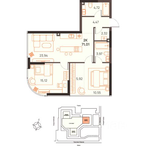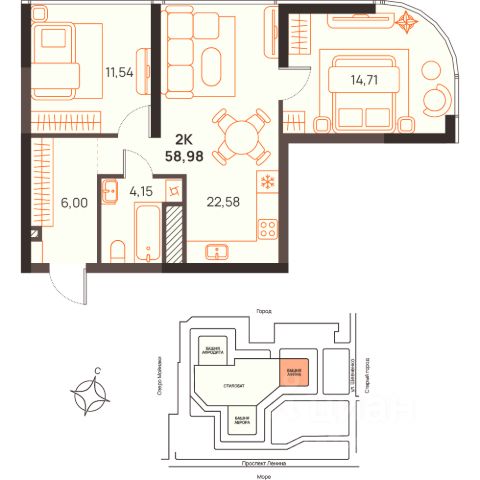 "Западный Проспект 82" — альянс жилых домов бизнес-класса в центре Евпатории, формирующий новое качество жизни у моря. Проект объединяет преимущества современной городской среды и курортного образа жизни: здесь можно работать, развиваться и отдыхать, не теряя привычного уровня комфорта. Комплекс представляет собой архитектурный ансамбль из трёх 23-этажных башен с панорамным остеклением, объединённых стилобатом с деловой, торговой и развлекательной инфраструктурой. Продуманная концепция формирует полноценную экосистему жизни, где все необходимые сценарии — от работы до отдыха — доступны внутри проекта. В основе — идея жизни без компромиссов: сочетание приватности, сервиса и насыщенной городской среды в непосредственной близости к морю. Ключевые преимущества проекта: • уникальное расположение в историческом центре Евпатории — в 10 минутах от побережья Чёрного моря; • современная архитектура с панорамным остеклением и выразительной подсветкой фасадов; • более 20 типов планировок — от функциональных студий до просторных квартир с террасами и видовыми характеристиками; • развитая внутренняя инфраструктура: торгово-развлекательный центр, рестораны, винотека, коворкинг и сервисные пространства; • собственный центр культурного развития для детей с концертным залом; • масштабная спортивная инфраструктура: тренажёрный зал, зоны фитнеса, воркаут-пространства, корт, йога и пилатес; • благоустроенные дворы с ландшафтным дизайном, прогулочными зонами и общественными пространствами; • более 3000 м² приватной территории на эксплуатируемой кровле с зонами для отдыха, спортивной и детской инфраструктурой; • двухуровневый подземный паркинг с детейлинг сервисом и зарядками для электромобилей; • широкий спектр сервисов уровня 5: консьерж-сервис 24/7, рум-сервис, клининг и техническое обслуживание, валет-паркинг, доставка и цифровые сервисы управления; • благоустроенный пляж для резидентов комплекса. "Западный Проспект 82" создаёт среду, в которой высокий уровень жизни сохраняется независимо от локации — пространство, где каждый день ощущается как баланс работы, отдыха и личного комфорта. Запишитесь на персональную консультацию в Ателье недвижимости "Западный Проспект 82", чтобы подобрать квартиру, соответствующую вашему ритму жизни и ожиданиям от комфортного проживания у моря. 2-комнатная квартира на проспекте Ленина в городе Евпатория.