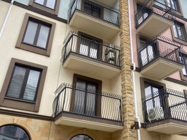 Раковина из хрустального стекла, блестит и переливается. Панорамный балкон, на полу кафель, тёплый пол. В каждой комнате кондиционер. Счётчики на воду, газ, электричество.