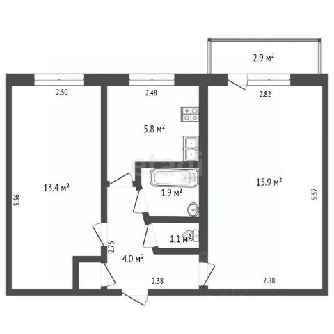 Общая площадь квартиры 31,8 м²=кадастровая площадь 28,8 м² +балкон 3 м².