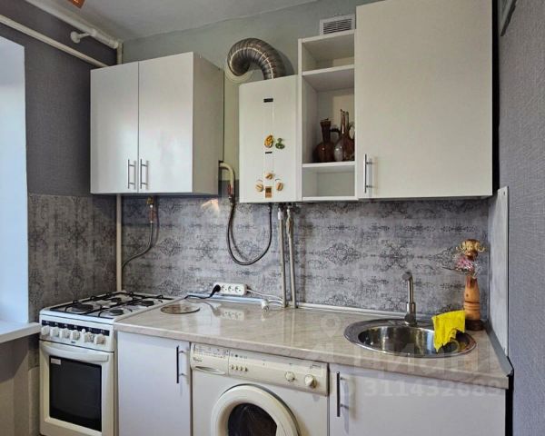 Квартира в хорошем состоянии, сделан косметический ремонт, на окнах и балконе установлены стеклопакеты, металлическая входная дверь, на полу линолеум. Отопление центральное, для подачи горячей воды - газовая колонка, на воду, газ и эл. эн. установлены счётчики. Окно кухни и балкон выходят на юг в тихий зеленый двор, чистый подъезд, тихие соседи.