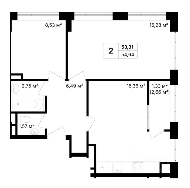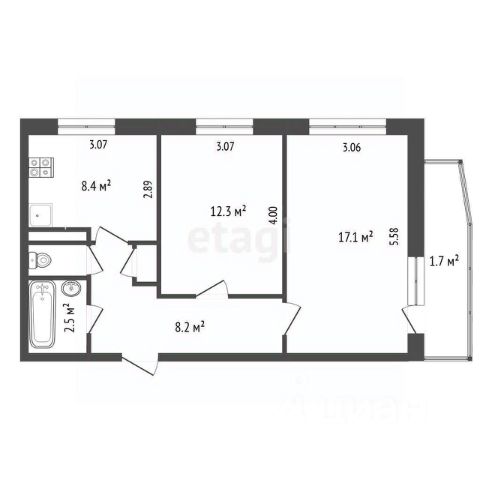 Квартира расположена на 1 этаже 9-этажного многоквартирного жилого дома 49, удобной планировки с изолированными комнатами, раздельным санузлом и двумя лоджиями. Квартира общей площадью - 48 м. кв., жилая площадь - 35 м. кв., кухня - 9 м. кв.