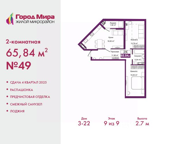 2-комн. квартира с предчистовой отделкой в ЖМ "Город Мира" на 2 этаже. Общая площадь: 60.54 кв.м., жилая: 27.72 кв.м., площадь просторной кухни-столовой: 12.01 кв.м. Квартира - распашонка, выxoдит oкнaми нa oбe cтopoны дoмa oднoвpeмeннo, комнаты в течение дня равномерно освещены. В квартире один балкон, один совмещенный и один раздельный санузел. Высота потолков 2.7 м. Квартиры в ЖК "Город Мира" ваш комфорт начинается здесь! "Город Мира" это масштабный жилой комплекс, созданный для тех, кто ценит комфорт, безопасность и гармонию с природой. Здесь продумана каждая деталь: от удобной инфраструктуры до эргономичных планировок квартир. В 2024 году микрорайон "Город Мира" победил в номинации "Лучший экологический проект года в сфере строительства" по версии премии Crimea Urban Awards. Почему выбирают наш комплекс: - Зеленый оазис живите среди природы в черте города. - Всё под рукой 2 детских сада, магазины, фитнес, медицина. - Безопасность: закрытая территория с видеонаблюдением. Наши квартиры: - Просторные планировки с кладовыми. - Автономное отопление: платите только за реальное потребление. - Готовая предчистовая отделка: стяжка пола, штукатурка стен (кроме 3, 4 домов, где нет штукатурки стен). - Консьерж-сервис и подземный паркинг. Инфраструктура комплекса: - Детские и спортивные площадки. - Зоны отдыха с беседками. - Фитнес-клубы и салоны красоты. - Будущая школа на территории, уже функционируют два детских сада. Выгодные условия покупки: - Ипотека от 5,5%, военная ипотека от 5,5%. - Рассрочка. - Материнский капитал на первоначальный взнос. Квартира находится в корпусе 5_42. Дом монолитный, одноподъездный, высотой 9 этажей. В подъезде 1 грузовой лифт. Окончание строительства - 4 квартал 2026 года. Оформление сделки по договору долевого участия. #25tFvF Продается 2-комнатная квартира на улице Батурина в городе Симферополь.