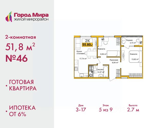 Двухкомнатная квартира от застройщика с предчистовой отделкой в ЖМ "Город Мира" на 4 этаже. Общая площадь: 63.7 кв.м. Высота потолков 2.7 м. Квартиры в ЖК "Город Мира" ваш комфорт начинается здесь! "Город Мира" это масштабный жилой комплекс, созданный для тех, кто ценит комфорт, безопасность и гармонию с природой. Здесь продумана каждая деталь: от удобной инфраструктуры до эргономичных планировок квартир. В 2024 году микрорайон "Город Мира" победил в номинации "Лучший экологический проект года в сфере строительства" по версии премии Crimea Urban Awards. Почему выбирают наш комплекс: - Зеленый оазис живите среди природы в черте города. - Всё под рукой 2 детских сада, магазины, фитнес, медицина. - Безопасность: закрытая территория с видеонаблюдением. Наши квартиры: - Просторные планировки с кладовыми. - Лоджии с остеклением. - Автономное отопление: платите только за реальное потребление. - Предчистовая отделка, включает стяжку пола, без штукатурки стен. - Консьерж-сервис и подземный паркинг. Инфраструктура комплекса: - Детские и спортивные площадки. - Зоны отдыха с беседками. - Фитнес-клубы и салоны красоты. - Будущая школа на территории, уже функционируют два детских сада. Выгодные условия покупки: - Ипотека от 5,5%, военная ипотека от 5,5%. - Рассрочка. - Материнский капитал на первоначальный взнос. Квартира находится в корпусе 5_3.3. Дом монолитный, одноподъездный, высотой 9 этажей. В подъезде 1 грузовой лифт. Окончание строительства - 4 квартал 2026 года. Оформление сделки по договору долевого участия. #ZmedCw Продается 2-комнатная квартира на улице Батурина в городе Симферополь.