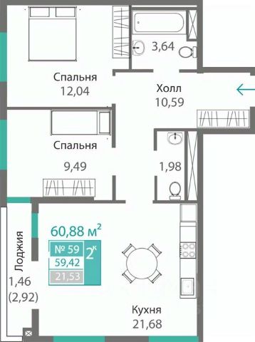 Продаётся 2-комнатная квартира в строящемся доме (Корпус 2), срок сдачи: II-кв. 2027, общей площадью 52.13 кв.м., на 6 этаже. Новый жилой комплекс "Единство" от застройщика "Монолит (Крым)" расположен по адресу Республика Крым, Симферопольский район, село Чистенькое