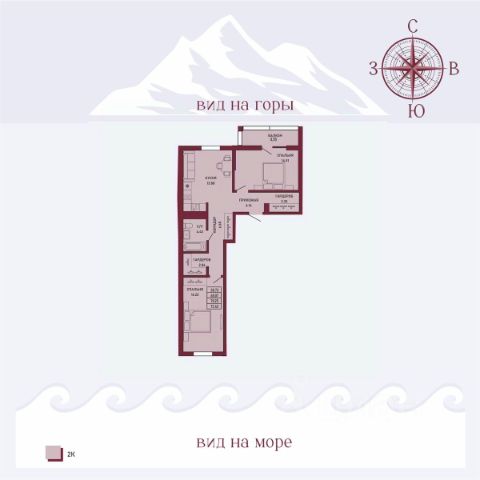 Однокомнатный апартамент площадью 42,56 м2 с видом на море в новостройке Бизнес-класса ЖК Море Ялта в уютном городе Гурзуф.