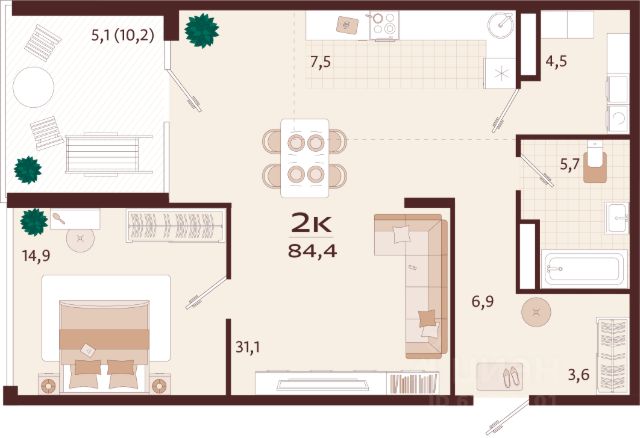 Жилой комплекс "РОЯЛТА" включает 5 монолитно-кирпичных девятиэтажных зданий. Проект предлагает квартиры различных планировок: от однокомнатных до трехкомнатных с расширенными балконами и террасами до 13,4 м2. Территория будет благоустроена детскими игровыми и спортивными площадками, гостевой автостоянкой и озеленением, включая газоны, деревья и кустарники. Также появятся современные уличные тренажёры, СПА-комплекс и панорамный инфинити-бассейн. В шаговой доступности находятся центральная набережная Ялты, детские сады, школы, супермаркеты, торговые центры, Ялтинский медицинский колледж, автовокзал и Мордвиновский парк. 2-комнатная квартира на улице Спендиарова в городе Ялта.