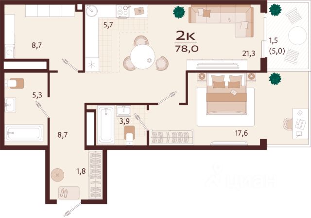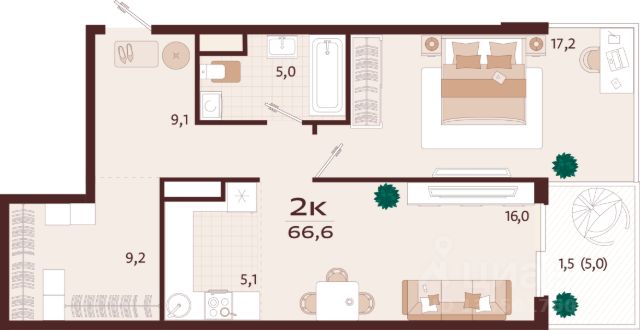 Жилой комплекс "РОЯЛТА" включает 5 монолитно-кирпичных девятиэтажных зданий. Проект предлагает квартиры различных планировок: от однокомнатных до трехкомнатных с расширенными балконами и террасами до 13,4 м2. Территория будет благоустроена детскими игровыми и спортивными площадками, гостевой автостоянкой и озеленением, включая газоны, деревья и кустарники. Также появятся современные уличные тренажёры, СПА-комплекс и панорамный инфинити-бассейн. В шаговой доступности находятся центральная набережная Ялты, детские сады, школы, супермаркеты, торговые центры, Ялтинский медицинский колледж, автовокзал и Мордвиновский парк. 2-комнатная квартира на улице Спендиарова в городе Ялта.