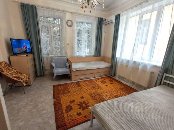 С мебелью и техникой. Квартира 46,9м2+ отдельный домик 35м2. Общая площадь около 80м2. Домовладение практически в центре города с настоящим ялтинским колоритом. Старый фонд, толстые стены, всего несколько квартир в доме. Закрытый дворик на 4 соседей. Квартира с хозяйственным подвальным помещением и отдельный гостевой домик во дворе. Планировка: зал-гостиная с обеденной зоной, отдельная кухня, сан узел, просторная комната. Подвальное помещение под квартирой, дверь со стороны улицы. Состояние жилое и чистое, сразу можно заехать. Отдельный домик около 35м2 рядом: на 1 этаже небольшая зона кухни и сан узел, на 2 этаже спальня. Реально сдавать в аренду