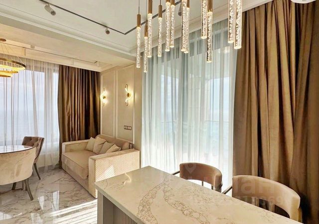 Отделка: предчистовая, разводка коммуникаций, установка котлов, радиаторов, панорамное остекление, открытый балкон, высота потолков 3 метра.