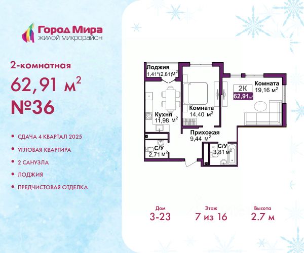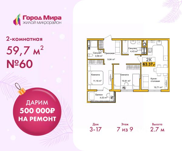 Спешите оформить бронирование по акционной цене! Срок акции ограничен! Стоимость квартиры указана со скидкой, ваша экономия составит 1,235,300 RUB. По всем вопросам обращайтесь в офис продаж, мы вам все подробно расскажем! Просторная 2-комн. квартира с предчистовой отделкой в ЖМ "Город Мира" на 1 этаже. Общая площадь: 66.04 кв.м., жилая: 30.01 кв.м., площадь просторной кухни-столовой: 18.75 кв.м. Квартира - распашонка, без проходных комнат, окна выходят на paзные стороны дома. В квартире одна лоджия, один совмещенный и один раздельный санузел. Высота потолков 2.8 м. Жилой комплекс "Город Мира" комфорт и гармония в современном формате. "Город Мира" это масштабный жилой комплекс, созданный для тех, кто ценит комфорт, безопасность и гармонию с природой. Здесь продумана каждая деталь от удобной инфраструктуры до эргономичных планировок квартир. В 2024 году микрорайон "Город Мира" победил в номинации "Лучший экологический проект года в сфере строительства" по версии премии Crimea Urban Awards. Ключевые преимущества комплекса: - удачное расположение зеленый район с благоприятным микроклиматом - продуманное зонирование жилые кварталы, зоны отдыха и коммерческие объекты - комфорт-класс высокое качество строительства и современные инженерные решения Инфраструктура "Города Мира": Образование и досуг: - 2 детских сада (по 260 мест каждый) - планируется строительство общеобразовательной школы - детские и спортивные площадки в каждом дворе - беседки для отдыха, зоны для выгула собак Ритейл и сервис: - магазины, аптеки, медицинские центры - фитнес-клубы, салоны красоты - детские развивающие центры Парковки: - гостевые парковки - наземные и подземные паркинги Квартиры с продуманным комфортом: - просторные планировки с кладовыми и колясочными - автономное отопление (по 23 дому: индивидуальное отопление) - выполнена стяжка пола (по 3, 4, 20, 21, 22 домам: выполненная стяжка пола и штукатурка стен) - Консьерж-сервис для дополнительного удобства Благоустройство территории: - ландшафтный дизайн с зонами отдыха - современные детские площадки - стильные холлы с дизайнерской отделкой - система видеонаблюдения для безопасности "Город Мира" это место, где созданы все условия для комфортной жизни. Выбирайте качество и продуманность в каждой детали! Квартира находится в корпусе 3_22. Дом монолитный, одноподъездный, высотой 9 этажей. В подъезде 1 грузовой лифт. Окончание строительства - 4 квартал 2025 года. Оформление сделки по договору долевого участия. #2sAT5D Продается 2-комнатная квартира в монолитном доме в Симферополе.