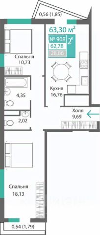 Общая площадь 43,6 кв.м. (без учета балкона), жилая 28.2 кв.м., кухня 6 кв.м.
