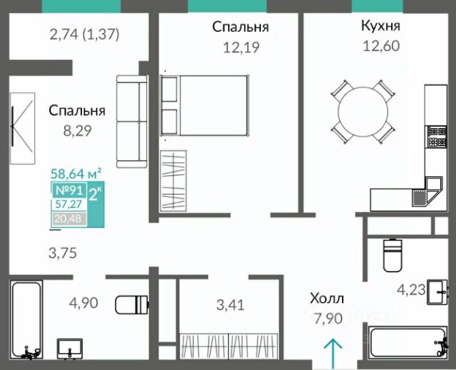 Продаётся 2-комнатная квартира в строящемся доме (Этап 4 (Секции А2, Ж2, Г4, В2, Г3)), срок сдачи: II-кв. 2028, общей площадью 52.4 кв.м., на 9 этаже. Новый жилой комплекс "Подсолнух" от застройщика "Монолит" расположен по адресу: Республика Крым, г. Симферополь, ул. Святителя Гурия