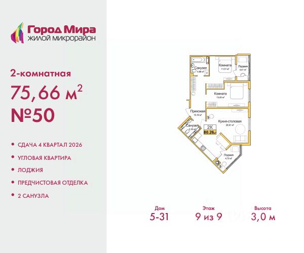 2-комн. квартира с предчистовой отделкой в ЖМ "Город Мира" на 9 этаже. Общая площадь: 60.56 кв.м., жилая: 27.72 кв.м., площадь просторной кухни-столовой: 17.2 кв.м. Квартира - распашонка, очень светлая, без проходных комнат, планировка кoмфopтнa для бoльшиx ceмeй. В квартире один балкон, один совмещенный санузел. Высота потолков 2.7 м. Квартиры в ЖК "Город Мира" ваш комфорт начинается здесь! "Город Мира" это масштабный жилой комплекс, созданный для тех, кто ценит комфорт, безопасность и гармонию с природой. Здесь продумана каждая деталь: от удобной инфраструктуры до эргономичных планировок квартир. В 2024 году микрорайон "Город Мира" победил в номинации "Лучший экологический проект года в сфере строительства" по версии премии Crimea Urban Awards. Почему выбирают наш комплекс: - Зеленый оазис живите среди природы в черте города. - Всё под рукой 2 детских сада, магазины, фитнес, медицина. - Безопасность: закрытая территория с видеонаблюдением. Наши квартиры: - Просторные планировки с кладовыми. - Лоджии с остеклением. - Автономное отопление: платите только за реальное потребление. - Предчистовая отделка, включает стяжку пола, без штукатурки стен. - Консьерж-сервис и подземный паркинг. Инфраструктура комплекса: - Детские и спортивные площадки. - Зоны отдыха с беседками. - Фитнес-клубы и салоны красоты. - Будущая школа на территории, уже функционируют два детских сада. Выгодные условия покупки: - Ипотека от 5,5%, военная ипотека от 5,5%. - Рассрочка. - Материнский капитал на первоначальный взнос. Квартира находится в корпусе 5_3.3. Дом монолитный, одноподъездный, высотой 9 этажей. В подъезде 1 грузовой лифт. Окончание строительства - 4 квартал 2026 года. Оформление сделки по договору долевого участия. #zm98bD