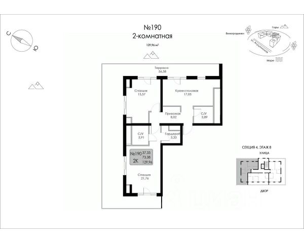Продается просторная двухкомнатная квартира площадью 82 кв.м. на восьмом этаже нового монолитного дома в центре Судака.