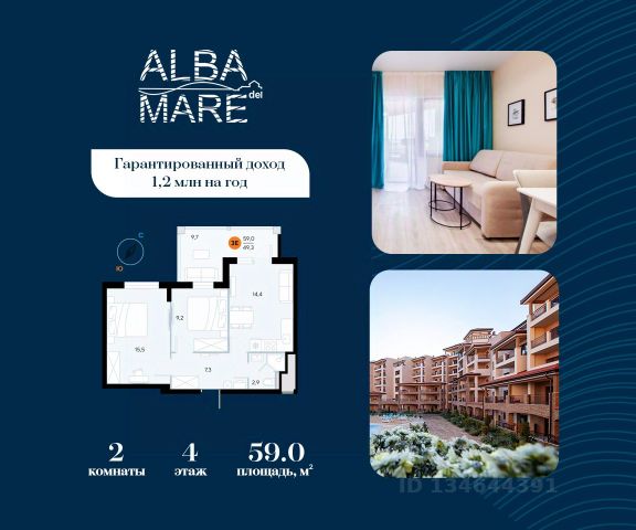 Продаются апартаменты в построенном комплексе. Срок сдачи 4 квартал 2024 года. Альба Дель Маре это комплекс апартаментов бизнес-класса с развитой инфраструктурой. Уютные здания переменной этажности строятся в 5 минутах ходьбы (385 метров) от одного из лучших пляжей Евпатории "Супер Аква Бич". Широкая береговая линия, места для активного отдыха и зоны релакса позволят насладиться отдыхом на любой вкус. Архитектурное решение комплекса создает истинное ощущение Средиземноморья и присутствия на дорогом курорте: скатные черепичные крыши, козырьки и навесы-перголы, арочные завершения проемов, цветовая палитра отделки и фасадов, где используются оттенки желтого, охры, терракоты и бежевого. Переменная этажность здания формирует камерность проекта, создавая прекрасные видовые характеристики для каждого апартамента. Просторные террасы с видом на море, патио с собственным выходом к бассейну на первых этажах комплекса, детская и спортивная площадки, ландшафтный дизайн здесь все создано для роскошного отдыха и расслабления. Территория комплекса апартаментов закрыта и находится под круглосуточным видеонаблюдением, что позволит резидентам и гостям чувствовать безопасность проживания. Концепция комплекса: комфорт проживания с первых дней заселения. Реализация апартаментов осуществляется с полной отделкой под ключ. Собственники апартаментов имеют возможность поручить управление недвижимостью профессиональному оператору, что позволит получать стабильный доход. Автономная газовая котельная позволит не зависеть от внешних отключений отопления., парковочные места на закрытой территории комплекса обеспечат безопасность вашему автомобилю, система центрального кондиционирования создаст комфортную температуру в каждом номере. Жилой комплекс реализуется в соответствии с 214 ФЗ.