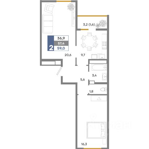 | 🔷 Средняя цена за м2: | 160 тыс. руб./м² |