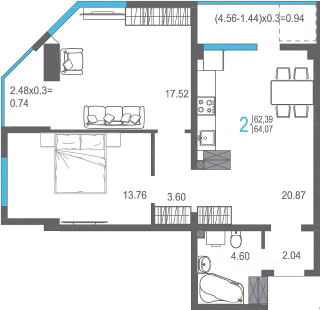 • ✅ Минимальная площадь: 40,7 м²