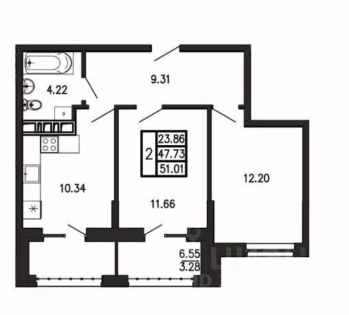 Две изолированные комнаты (18.40+10.28 кв.м.)