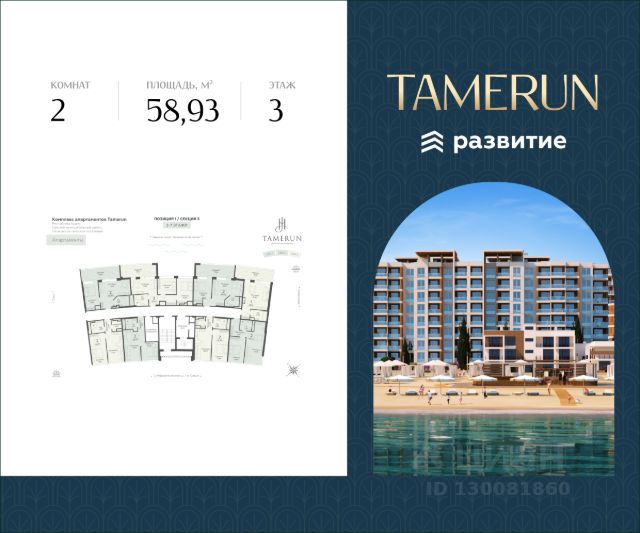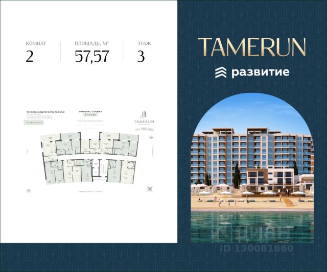 В продаже 2 комнатный апартамент площадью 36.43 кв. м, без отделки. Апартамент расположен в апарт-комплексе Tamerun от ГК "Развитие". Tamerun - морская резиденция на Западном берегу Крыма, между городами Евпатория и Саки. Апарт-комплекс расположен на первой береговой линии в живописной бухте Каламийского залива, между Черным морем и розовым озером Сасык. В рамках реализации проекта предусмотрено 1213 доходных апартаментов с первоклассным отельным и санаторно-курортным сервисом. Клубная инфраструктура, историческая локация, интерьеры от ведущих дизайнеров - все это и многое другое ждет вас в солнечной резиденции Tamerun. Расположение Пешком: - 15 мин. до Ж/Д станции "Техникум"; - 20 мин. до Ж/Д станции "Прибрежная"; - 25 мин. до Пирса у озера Сасык-Сиваш. На автомобиле: - 5 мин. до Симферопольского шоссе; - 10 мин. до города Саки; - 20 мин. до Евпатории; - 45 мин. до аэропорта имени И. К. Айвазовского. Благоустройство - собственный клубный пляж; - развлекательный центр; - 2 открытых и 1 закрытый бассейн; - медицинский SPA-комплекс; - фитнес-центр с залами для йоги и гимнастики; - площадки для тенниса, футбола и волейбола; - амфитеатр на свежем морском воздухе; - лаунж-зона и прогулочные дорожки; - детский клуб с кинотеатром; - батуты, лабиринты и скалодромы для подростков; - конференц-зал на 50 человек и переговорные кабинеты; - более 100 растений в приватном дворе; - круглосуточный консьерж-сервис; - подземный паркинг на 188 машино-мест с автомойкой; - наземная гостевая парковка на 259 машино-мест; - летнее кафе, 3 ресторана и супермаркет прямо в доме. Окружение - Сасыкский заказник, крупнейшее в Крыму соленое розовое озеро Сасык-Сиваш, песчаные пляжи протяженностью в 150 метров; - главная мечеть Евпатории Джума-Джами, Собор Николая Чудотворца, Комплекс Караимских кенас; - множество другой повседневной инфраструктуры в ближайшем городе Саки.