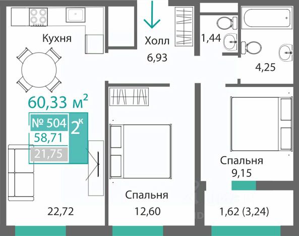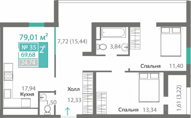В продаже 2-к квартира без комиссии для покупателя!