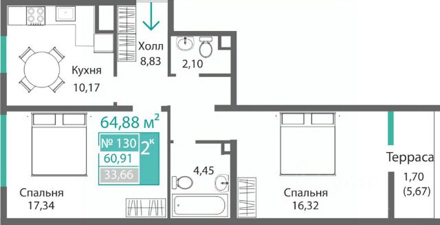 Продаётся 2-комнатная квартира в строящемся доме (Этап 4 (Секции А2, Ж2, Г4, В2, Г3)), срок сдачи: II-кв. 2028, общей площадью 66.79 кв.м., на 7 этаже. Новый жилой комплекс "Подсолнух" от застройщика "Монолит" расположен по адресу: Республика Крым, г. Симферополь, ул. Святителя Гурия