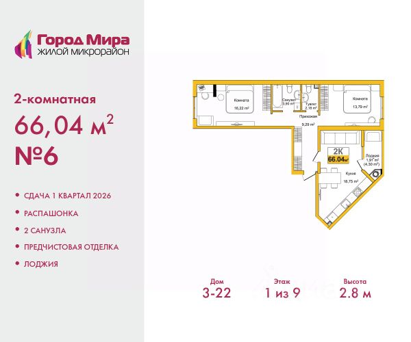 Продаётся 2-комнатная квартира в строящемся доме (Дом 1), срок сдачи: II-кв. 2026, общей площадью 67.4 кв.м., на 2 этаже. ЖК Поэма - это территория вдохновения и творческих идей Здесь Вы ощутите внутреннюю свободу, простор для новых планов и реализации возможностей, став автором своей собственной поэмы. Объект комфорт-класса великолепно расположен в центре Симферополя на улице Трубаченко. Два монолитно-каркасных дома возводятся в сдержанном, изысканном стиле, сочетая в себе эстетику и надёжность. Большие площади остекления подчёркивают современную архитектуру здания. Собственная крышная котельная и актуальные технические решения обеспечат будущим собственникам исключительный комфорт. Территория дома благоустроена по самым актуальным стандартам: закрытый двор видеодомофоны с функцией распознавания лиц помещение для размещения консьерж-сервиса, который позаботится о комфорте, безопасности проживающих, уюте и чистоте ландшафтное озеленение с редкими видами растений и системой автополива детская площадка с инновационным оборудованием современный воркаут и зона для занятий йогой lounge - зона с гамаками холлы с ремонтом по индивидуальному дизайнерскому проекту места для стоянки велосипедов и колясок (во дворе) система видеонаблюдения выделенная зона для парковки транспортных средств площадью более 2200 кв. м. с возможностью выезда на ул. Трубаченко и ул. Крымских Партизан. В жилом комплексе Поэма Вы сможете наслаждаться потрясающими видами на город, живописными рассветами и незабываемыми закатами прямо из окна своей квартиры. Локация объекта привлекает также и развитой инфраструктурой. Это район с транспортной доступностью по всем направлениям. Поблизости расположены супермаркеты, торговые центры, банки, детские сады и школы, спортивный клуб, аптеки, химчистка, кафе и рестораны. В нескольких минутах ходьбы парк им. Шевченко - один из старейших в Симферополе. Это любимое место отдыха для многих поколений, где приятно проводить время в гармонии с природой. Жилой комплекс Поэма - свободный ритм, достижимая высота. Купить 2-комнатную квартиру в новостройке с отделкой в районе Центральный в городе Симферополь.