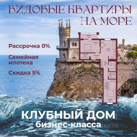 ЗВОНИТЕ ПРЯМО СЕЙЧАС, ЧТОБЫ ЗАБРОНИРОВАТЬ ЛУЧШУЮ КВАРТИРУ! Цена указана со скидкой 5% при условии 100% оплаты либо ипотека. - 80% ВИДОВЫХ КВАРТИРА НА МОРЕ ИЛИ ГОРЫ - Рассрочка 0% - Ипотека от СБЕРБАНКА - Доходность инвестиций от 40% годовых. - Безопасная сделка по ФЗ-214/эскроу-счёта Клубный дом "Ялта" — это воплощение изысканной жизни, где гармонично сочетаются статусность бизнес-класса, уют курортного отдыха и передовые технологии для комфортного проживания. Этот жилой комплекс создан для тех, кто ценит безупречное качество, безопасность и эстетику в каждой детали. Архитектура и дизайн * Современное монолитное 16-этажное здание * Фасады благородных оттенков: чистый белый, переливы шампань и тёплое золото * Первые этажи комплекса представлены в отделке рустовым камнем * Авторские интерьеры мест общего пользования * В темное время суток здания подчёркивает подсветка Характеристики квартиры и мест общего пользования * 80% лотов — с панорамными видами на море и горы. * Просторные балконы * Вместительные гардеробные и кухни-гостиные * Высокие потолки квартир 2,8 м Инфраструктура для комфортной жизни * Инфинити-бассейн * Ландшафтный дизайн и озеленение придомовой территории комплекса * Скоростные грузопассажирские лифты, соответствующие стандартам 5*-отелей, с прямым доступом в паркинг. * Кафетерий и магазин у дома * Детский веревочный комплекс "Парк-Маугли" * Скалодром * Финская сауна, хамам * На 1 этаже жилого комплекса - лапомойка и гостевой туалет Безопасность и технологии спокойствия * Закрытая территория, контролируемый доступ * Видеонаблюдение по всему периметру комплекса * Электронные домофоны с индивидуальными ключами с доступом * Безбарьерная среда * Подземный паркинг * Келлеры * Зоны хранения для велосипедов, самокатов и колясок * Мотоместа Коммуникации и инженерия * Автономная газовая котельная на крыше * Телеметрия * Класс энергоэффективности жилого комплекса "А+" * Места для кондиционеров и практическое решение для маскировки коммуникаций Расположение и ближайшие пляжи * 2,9 км до моря 10 мин на машине * 2 км от центра Ялты * Пляж Приморский — 30 мин пешком / 10 мин на авто * Пляж Массандровский — 20 мин на машине