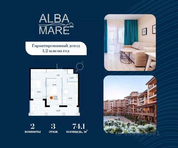 Продаются апартаменты в построенном комплексе. Срок сдачи 4 квартал 2024 года. Альба Дель Маре это комплекс апартаментов бизнес-класса с развитой инфраструктурой. Уютные здания переменной этажности строятся в 5 минутах ходьбы (385 метров) от одного из лучших пляжей Евпатории "Супер Аква Бич". Широкая береговая линия, места для активного отдыха и зоны релакса позволят насладиться отдыхом на любой вкус. Архитектурное решение комплекса создает истинное ощущение Средиземноморья и присутствия на дорогом курорте: скатные черепичные крыши, козырьки и навесы-перголы, арочные завершения проемов, цветовая палитра отделки и фасадов, где используются оттенки желтого, охры, терракоты и бежевого. Переменная этажность здания формирует камерность проекта, создавая прекрасные видовые характеристики для каждого апартамента. Просторные террасы с видом на море, патио с собственным выходом к бассейну на первых этажах комплекса, детская и спортивная площадки, ландшафтный дизайн здесь все создано для роскошного отдыха и расслабления. Территория комплекса апартаментов закрыта и находится под круглосуточным видеонаблюдением, что позволит резидентам и гостям чувствовать безопасность проживания. Концепция комплекса: комфорт проживания с первых дней заселения. Реализация апартаментов осуществляется с полной отделкой под ключ. Собственники апартаментов имеют возможность поручить управление недвижимостью профессиональному оператору, что позволит получать стабильный доход. Автономная газовая котельная позволит не зависеть от внешних отключений отопления., парковочные места на закрытой территории комплекса обеспечат безопасность вашему автомобилю, система центрального кондиционирования создаст комфортную температуру в каждом номере. Жилой комплекс реализуется в соответствии с 214 ФЗ.