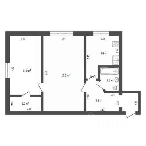 • ✅ Объект наибольшей площади: 58,4 м²