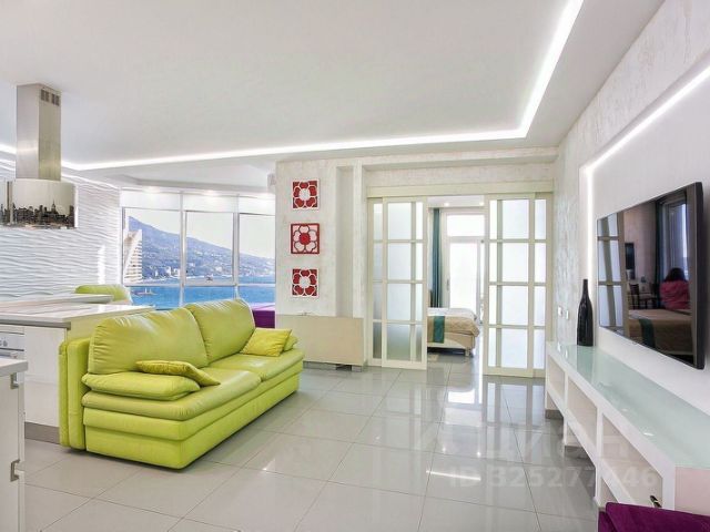 Продажа роскошного Апартамента в Современном комплексе Зазеркалье. Комплекс расположен в удивительном месте недалеко от ялтинской Набережной, среди субтропической зелени Приморского Парка, рядом с теннисными кортами и благоустроенным пляжем. Вдохновленные произведением Л. Кэрролла Алиса в Зазеркалье архитекторы и дизайнеры соединили сказочный мир детства с природным богатством южного берега Крыма. Современное многоэтажное здание комплекса включает в себя апартаменты, ресепшен, сервис-бюро,детская комната . лобби-бар и ресторан, СПА-центр, панорамный бассейн-инфинити, тренажерный зал, подземный 4-х уровневый паркинг, современную систему безопасности (секьюрити 24/7, видеонаблюдение, пожарная безопасность). Кроме месторасположения , преимуществом комплекса действительно стали комфорт и благополучие !!! Просторные балконы, шириной 2,4 метра, на которых есть возможность расположить шезлонги или летнюю мебель в соответствии с Вашими предпочтениями!!! Звукоизоляцию от внешнего шума обеспечивают современные бельгийские оконные системы REYNAERS с двухкамерными, энергосберегающими стеклопакетами. Скоростные лифты KLEEMANN позволяют быстро и с комфортом добраться к своим апартаментам, а применение автомобильных лифтов снижает остроту проблемы дефицита парковочного пространства. Аппартамент находится на 11 этаже . Общая площадь 79 кв.м. Изысканный современный дизайнерский ремонт не оставит равнодушным даже самого взыскательного покупателя . Изумительный прямой вид на море ! Удобная планировка : два сан узла, просторная спальня, современная кухня и гостиная с выходом на просторный балкон. Вся мебель и освещение -Италия . Техника и сантехника европейских мировых производителей . Теплый пол .Автоматические шторы с раскрытием в две стороны . Предлагая Вам стать собственником данных апартаментов , мы подразумеваем не только квадратные метры, а выгодные инвестиции, инфраструктуру и благоустроенность!