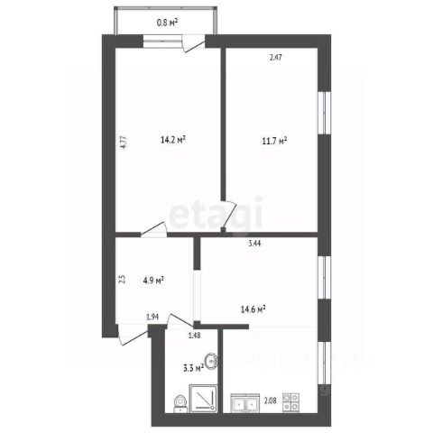 Номер в базе: 3704525 Продается 2-комнатная квартира на вторичном рынке в Саки.