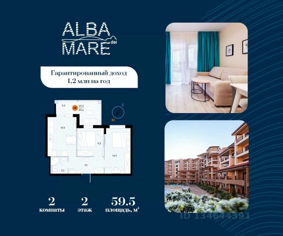 Продаются апартаменты в построенном комплексе. Срок сдачи 4 квартал 2024 года. Альба Дель Маре это комплекс апартаментов бизнес-класса с развитой инфраструктурой. Уютные здания переменной этажности строятся в 5 минутах ходьбы (385 метров) от одного из лучших пляжей Евпатории "Супер Аква Бич". Широкая береговая линия, места для активного отдыха и зоны релакса позволят насладиться отдыхом на любой вкус. Архитектурное решение комплекса создает истинное ощущение Средиземноморья и присутствия на дорогом курорте: скатные черепичные крыши, козырьки и навесы-перголы, арочные завершения проемов, цветовая палитра отделки и фасадов, где используются оттенки желтого, охры, терракоты и бежевого. Переменная этажность здания формирует камерность проекта, создавая прекрасные видовые характеристики для каждого апартамента. Просторные террасы с видом на море, патио с собственным выходом к бассейну на первых этажах комплекса, детская и спортивная площадки, ландшафтный дизайн здесь все создано для роскошного отдыха и расслабления. Территория комплекса апартаментов закрыта и находится под круглосуточным видеонаблюдением, что позволит резидентам и гостям чувствовать безопасность проживания. Концепция комплекса: комфорт проживания с первых дней заселения. Реализация апартаментов осуществляется с полной отделкой под ключ. Собственники апартаментов имеют возможность поручить управление недвижимостью профессиональному оператору, что позволит получать стабильный доход. Автономная газовая котельная позволит не зависеть от внешних отключений отопления., парковочные места на закрытой территории комплекса обеспечат безопасность вашему автомобилю, система центрального кондиционирования создаст комфортную температуру в каждом номере. Жилой комплекс реализуется в соответствии с 214 ФЗ.