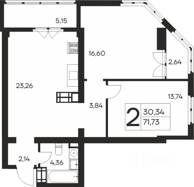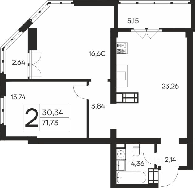 Продаётся 2-комнатная квартира в строящемся доме (Дом 1), срок сдачи: IV-кв. 2027, общей площадью 71.73 кв.м., на 16 этаже. Новый жилой комплекс "Ай-Петри" от застройщика "Интерстрой" расположен по адресу Республика Крым, Ялта, улица Кирова